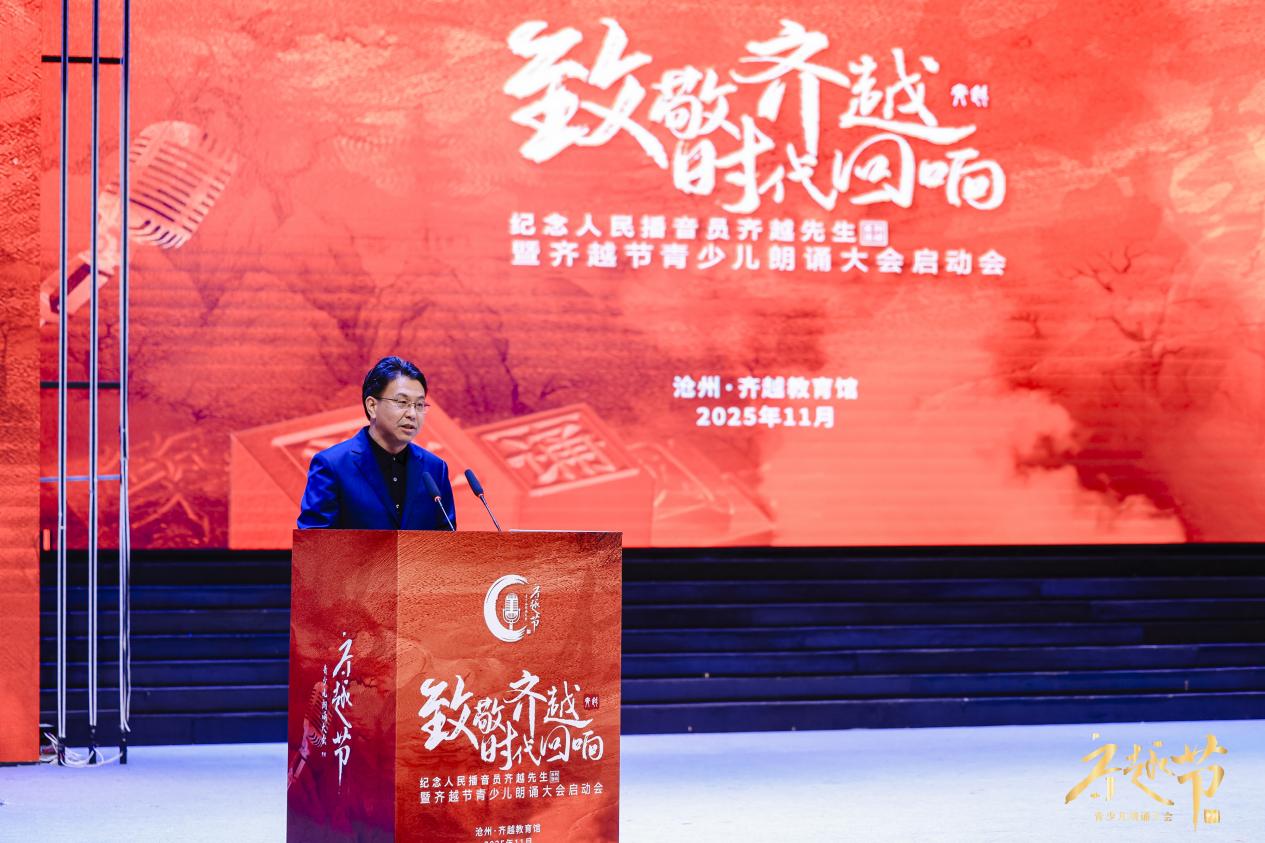 2025年11月11日,“致敬齐越·时代回响”纪念人民播音员齐越先生系列活动暨齐越节青少儿朗诵大会启动会,在河北沧州师范学院齐越教育馆隆重举行。全球近600位朗诵艺术工作者齐聚一堂,共同见证这一具有深远意义的时刻。